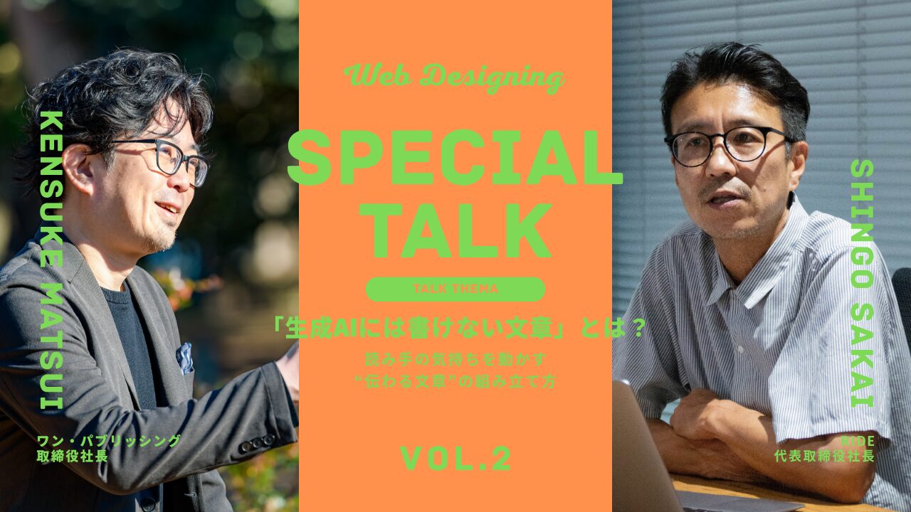 ワン・パブリッシング取締役社長・松井謙介さんと、以前Web Designing本誌で連載を担当していたRIDE Inc.の酒井新悟さん。ともに雑誌出身で、Webメディアでのコンテンツ制作の経験も豊富な2人のプロが、これからの時代に欠かせない「文章力」とはどんなものか、熱く語り合ってくれました(前後編の後編)。