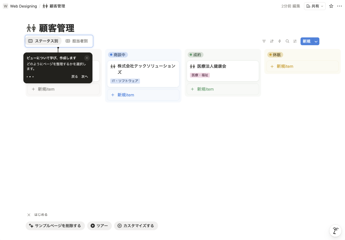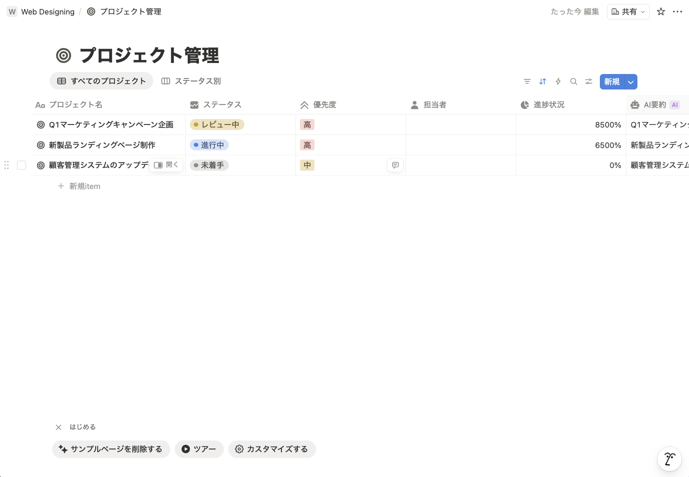 Notion AIの魅力は、単にデータベースを作る手間を省くだけでなく、作りたい用途に応じて最適なプロパティやビューを自動で設定してくれること。必要な項目をいちから考える手間を減らせるため、初心者でも迷わず効率的にデータベースを作成できるほか、経験者にとっても作業時間を大幅に短縮することにつながるでしょう。