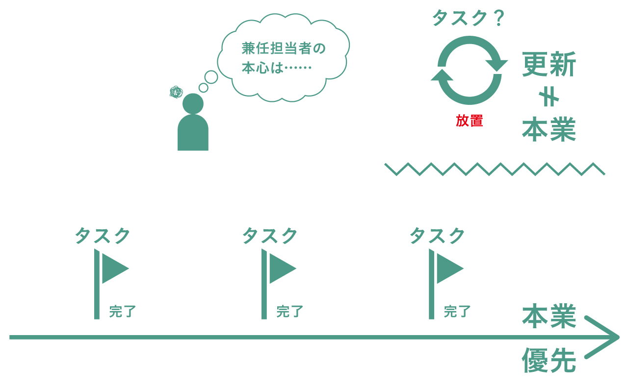兼任のCMS担当者の本音。「更新業務」は、あくまで本業の“ついで”になりがち