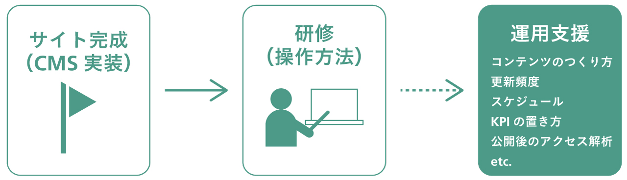例えば、サイトが完成したタイミングで、クライアントの担当者向けにCMSの操作方法を教える研修は、どの制作会社さんも比較的きちんとやっていると思います。
